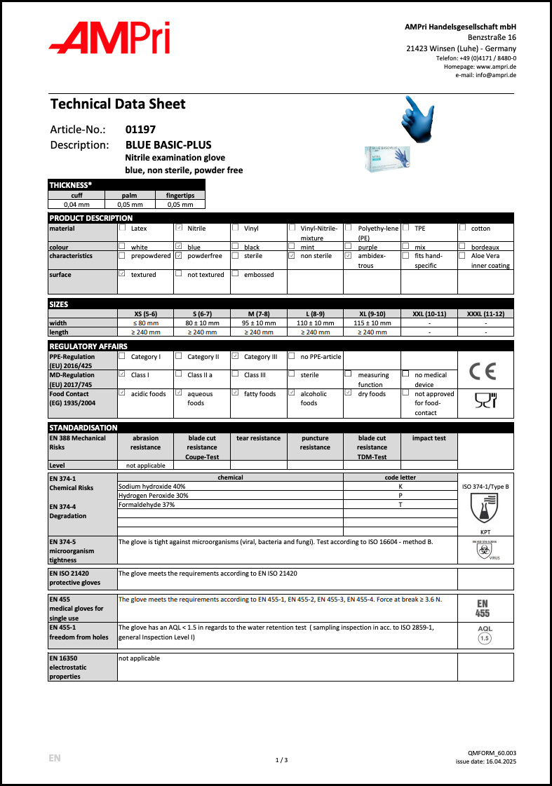 Normeringen: EN 374-1/-4/-5, EN 420, EN 455-1/-2/-3/-4