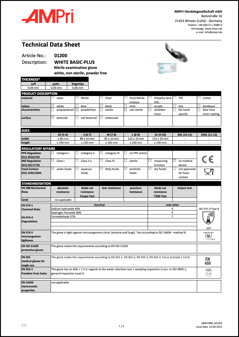 De AMPri Basic-Plus nitril onderzoekshandschoenen in maat M zijn een betrouwbare keuze voor dagelijks gebruik in uiteenlopende sectoren, zoals gezondheidszorg, tandheelkunde, voedingsindustrie, schoonmaak, cosmetica en meer. Deze poedervrije, witte wegwerphandschoenen bieden een uitstekende combinatie van bescherming, draagcomfort en grip.