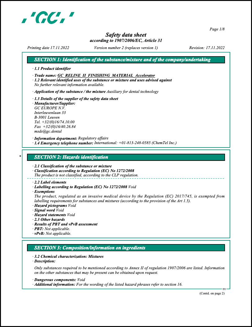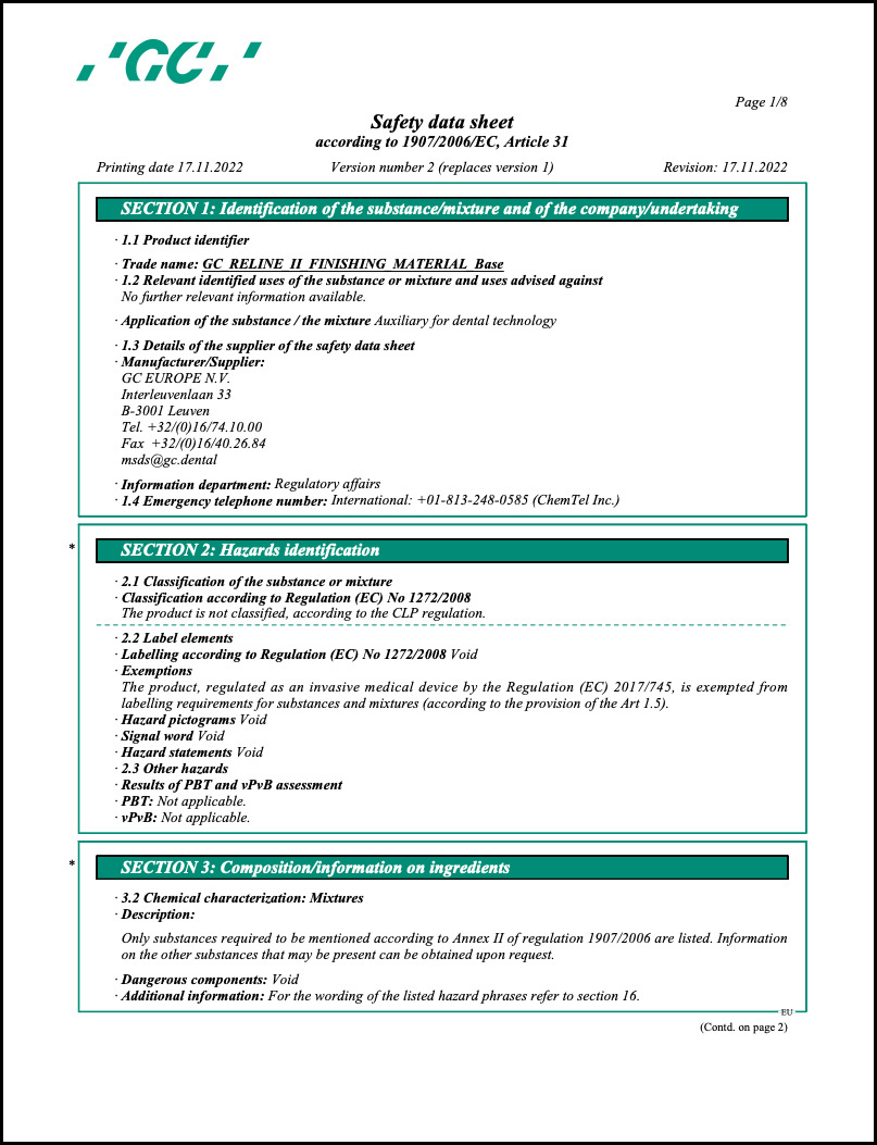 - Sterke hechting & eenvoudige aanpassing – Dankzij de verbeterde GC RELINE II Primer hecht het materiaal stevig aan de prothese, terwijl aanpassingen mogelijk blijven tot drie maanden na de eerste applicatie.