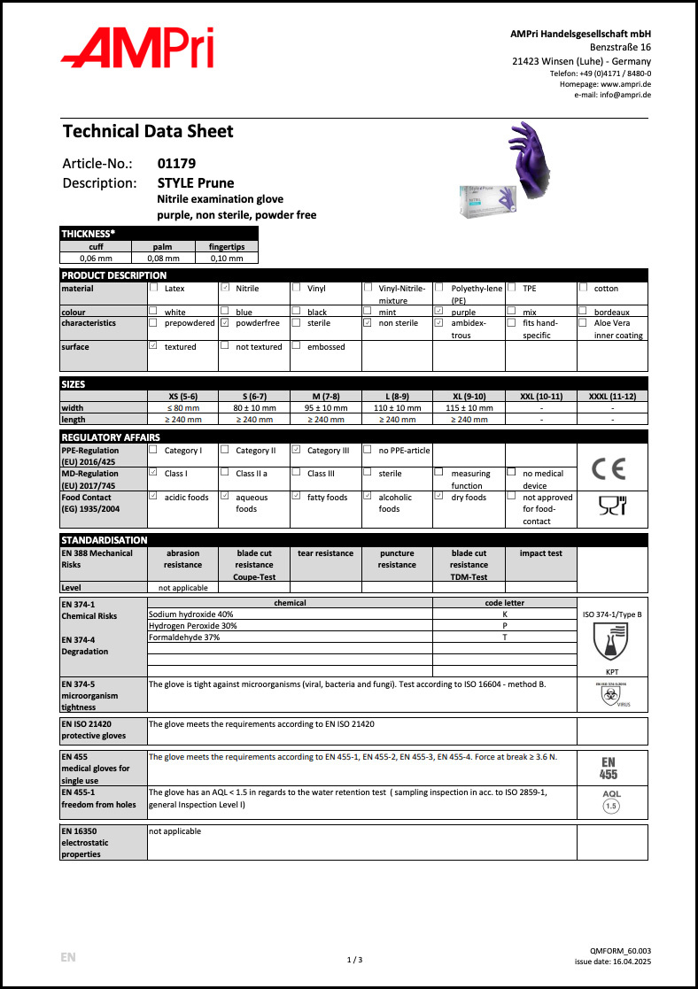 Gecertificeerd volgens o.a. EN 374, EN 420, EN 455 en PBM Categorie III, zijn deze handschoenen ideaal voor gebruik in de gezondheidszorg, tandheelkunde, industrie, voedselverwerking, persoonlijke dienstverlening en meer. Ze zijn bovendien een uitstekend alternatief voor latex, dankzij het proteïnevrije nitrilmateriaal.