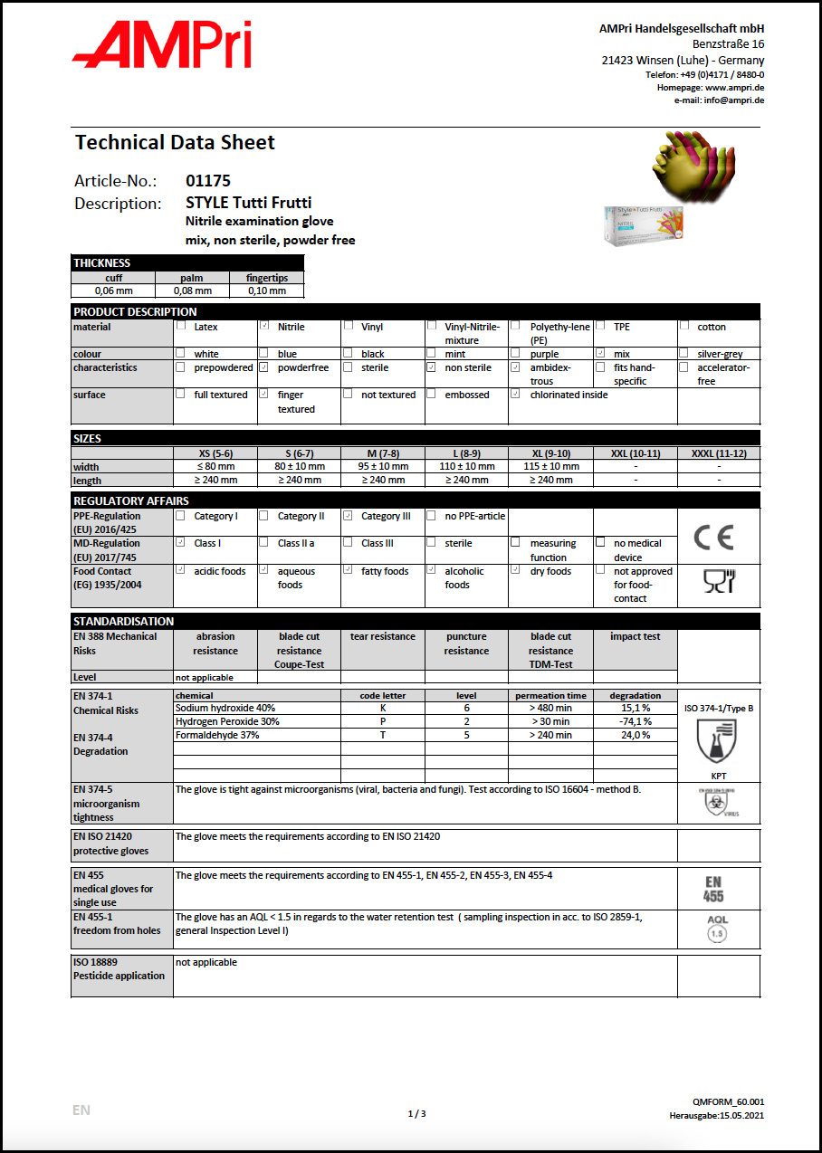 Veilige keuze – AQL 1,5, voldoet aan EN ISO 21420, EN 455 en EN 374
