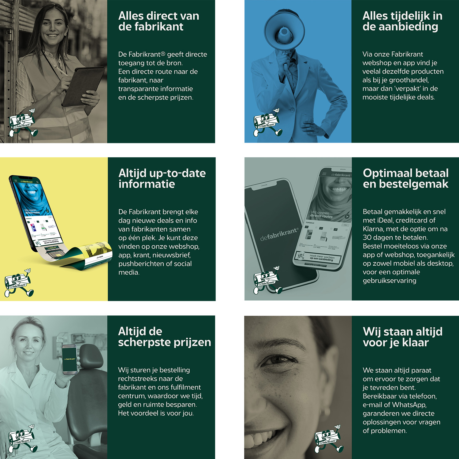 De Fabrikrant bezorgt de scherpste aanbiedingen op de tandartspraktijk. Via onze Fabrikrant webshop en app vind je veelal dezelfde productenals bij je groothandel, maar dan ‘verpakt’ in de mooiste tijdelijke deals.